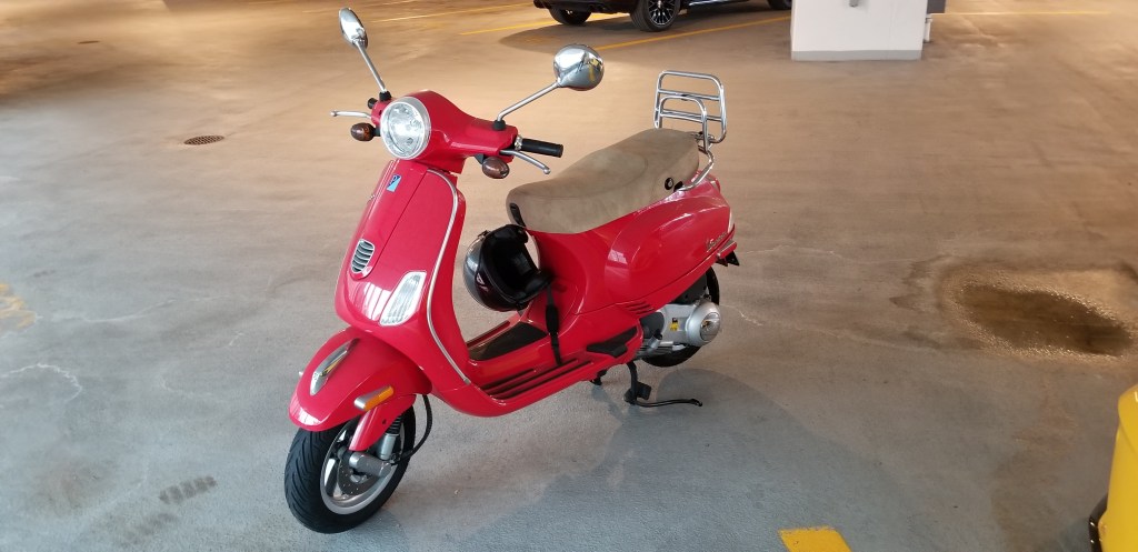 A bit up an upgrade from my Vespa!!! I’ve got with me about 100 lbs of gear in the two panniers and two top bags.