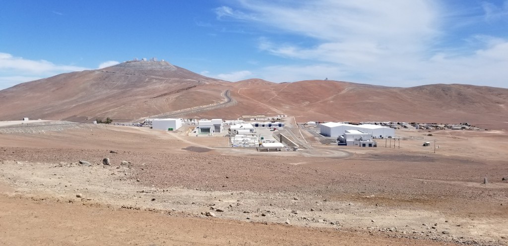 The Atacama Desert is one of the driest places on earth, I believe only drier than the polar ice caps. Further, parts of it are very high, in the 15k-20k foot elevation. As a result, there are a number of observatories that engage in serious research. I went by one of them, Cerro Paranal Observatory, and took a detour to check it out. The observatory is at 8,645 feet and there is NOTHING around it for many many miles. I took the first photo but then downloaded a very cool pic off Wikipedia after doing some research.