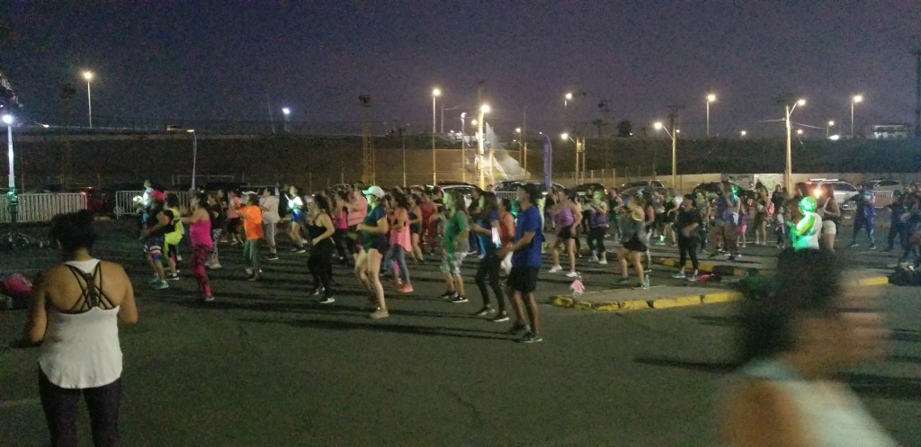 Walking home along the beach, the city had set up a stage and there was an outdoor zumba class going on with about 100 people participating. 9:00 pm on a Saturday and getting ready for the night out!