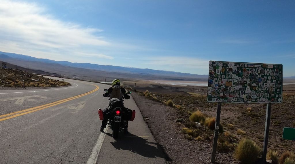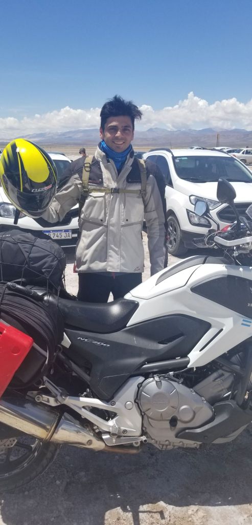 Luciano. I met Luciano on 2/17 under a highway sign in the Atacama Desert. He took me under his wing and helped me out for several days thereafter. Luciano, who is from Argentina, wants to ride Route 66, and hopefully, I’ll be able to be his partner on doing so in the future.