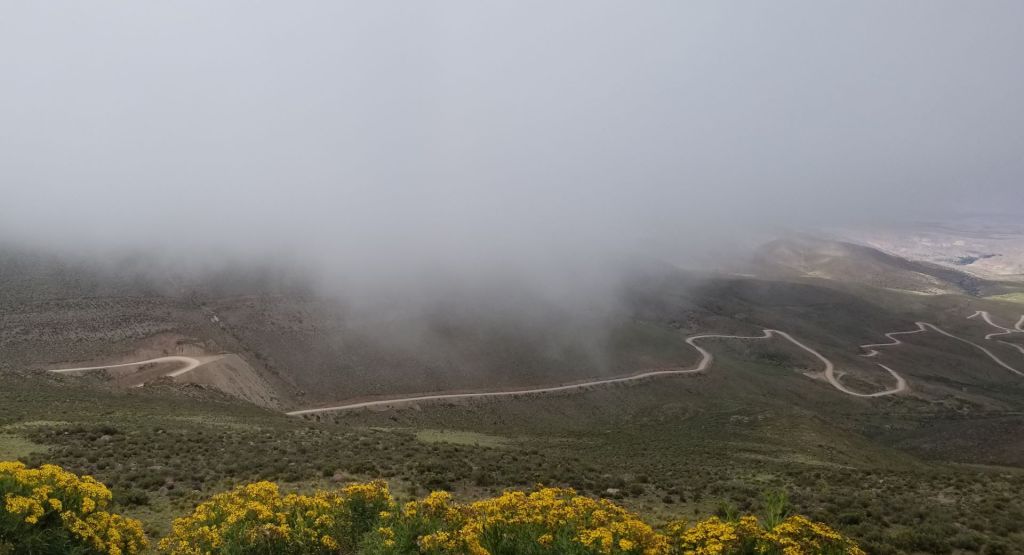 As I turned the corner on a stretch of highway, I was faced with the image below. The line sloping up and to the left on the dune ahead is the highway. I measured the distance of that line on the ride and it was more than two miles, to give you some perspective on the scale of these mountains. As I went over the top of the pass and entered into the next “cove”, I could see the road ahead of me for over six miles!