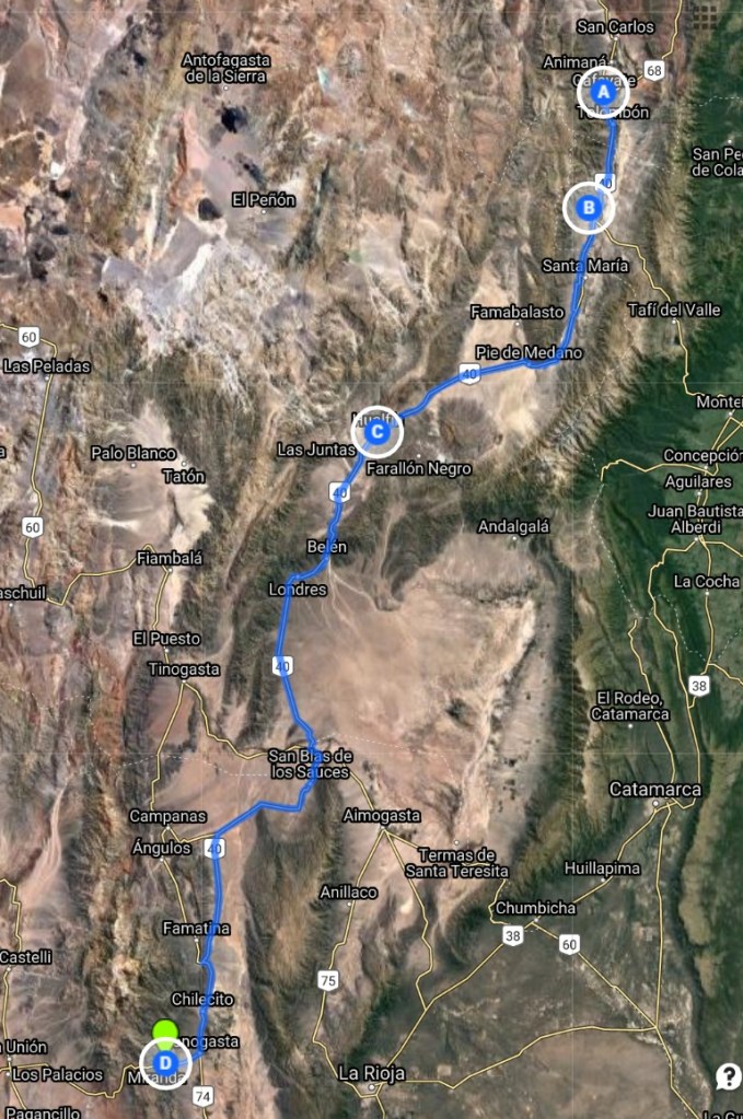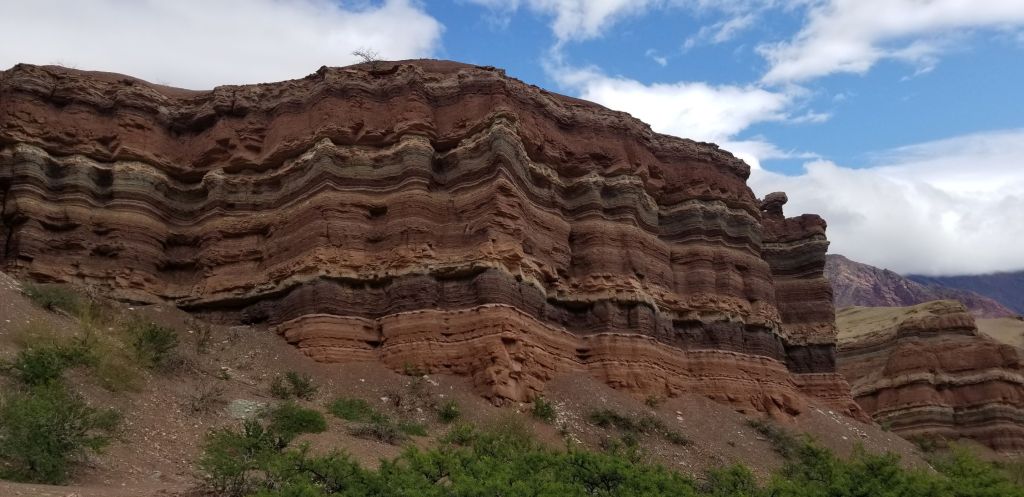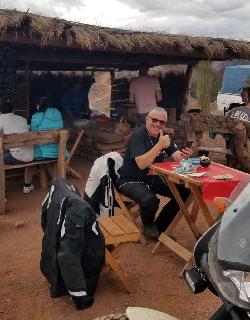 Later on in the day I entered into Quebrada de las Conches, which is a desert canyon with the Rio las Conches running through it. I stopped for lunch at the stand on the side of the road and met Pedro, who is pictured below. Pedro lives in Cordoba, Argentina and left on Dec. 8th on his motorcycle, headed south to Ushuaia and is now headed north to Anchorage, then east to Chicago and Toronto, then south to Miami and then back home to Cordoba. Pedro will be gone for about a year and living on his motorcycle. His English and my Spanish were equivalently poor, but we were able to carry on a conversation over lunch. As it turns out, Pedro loves the Blues, hence the trip to Chicago. We hit it off after finding this out. I will be Pedro’s host in Chicago for a Blues tour sometime in 2020. Pedro also fought in the war with England over the Falkland Islands.