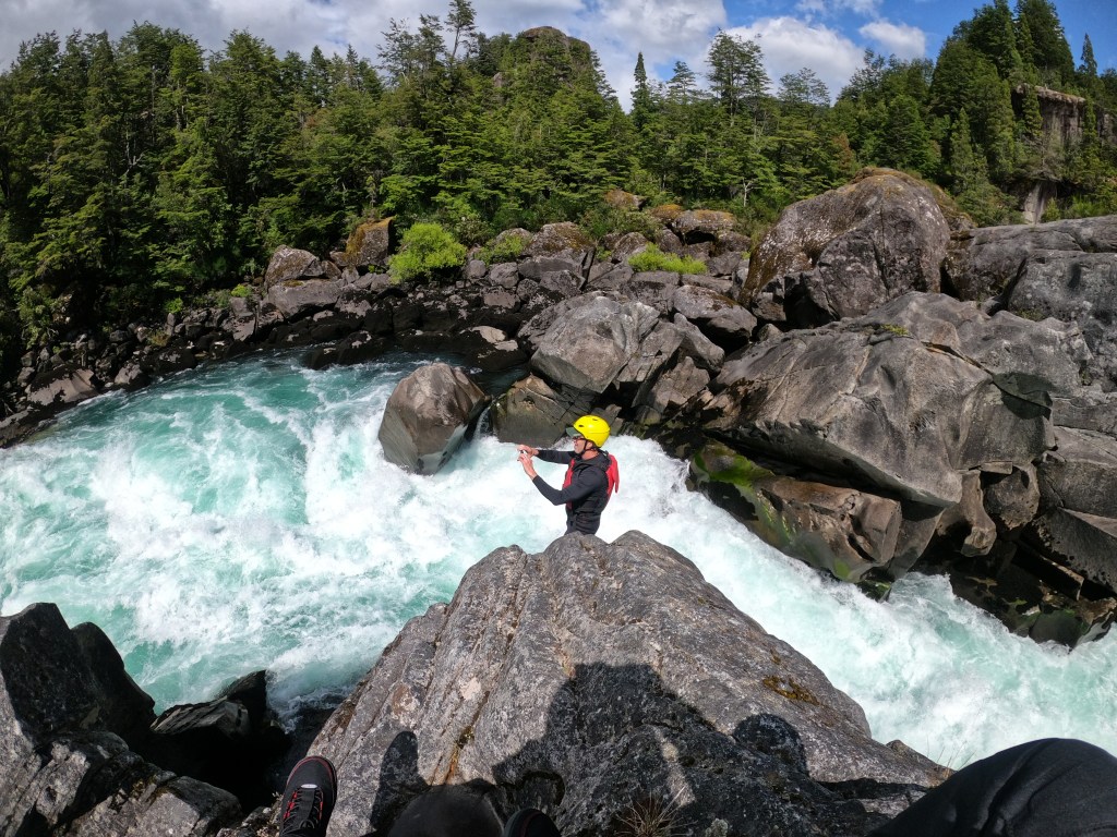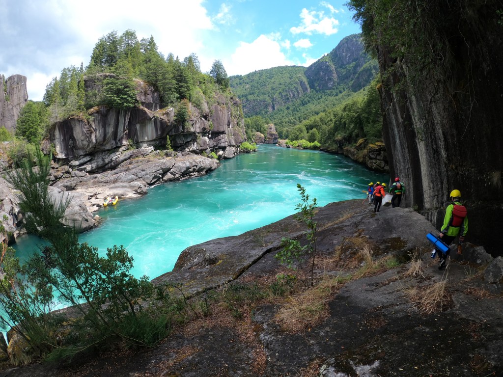 Rafted the Inferno Canyon section of the Futaleufu. The Inferno Canyon section of the river is above the Bridge-to-Bridge section and is more difficult and challenging. There are two rapids which are Class V/V+, which required portaging around and are called Zeta and Throne Room. Below are a few pictures of Zeta.