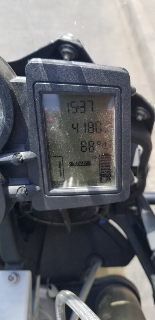 Got an early start but with a minor hiccup. Couldn’t get my bike out of the enclosed parking area because of another car that parked there. Had to have the owner work with me to push it backward while his wife laughed at both of us sweating and struggling to get it out. I’ve learned to choose wisely where to park the beast.