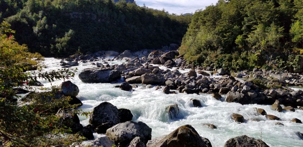 The Fu is a pristine river with a beautiful bluish green color and crystal clear. The Futaleufu Valley is stunning and ringed by peaks that are in the 8,000-foot range. The area is a temperate rain forest. The weather is very dynamic given the valley’s topography, proximity to the ocean and elevation. What is also special is that it is so sparsely populated, and the tourism burden is almost non-existent. It’s hard to get to and there is only one small lodge that I would characterize as high-end, expensive. The season to be here is Dec.-Mar., when the sun shines and the temperatures are moderate. It can get into the 40’s at night and into the 80’s during the day but is more likely in the 60’s and 70’s. Interestingly, its latitude is about the same as Chicago’s.