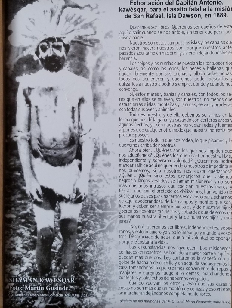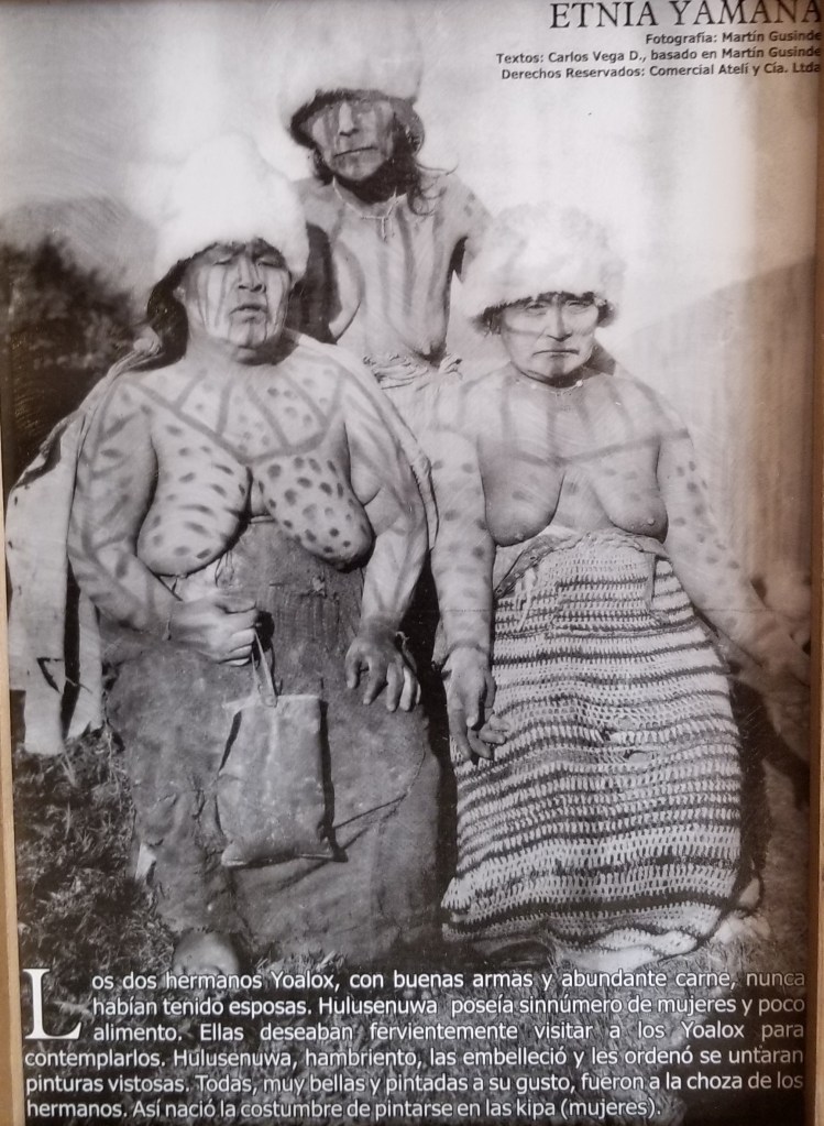 Cerro Sombrero is one of the end of the road type towns, which I love to explore. Our hotel is below and is a place that is typically populated by oil and gas workers. It’s very basic, but in the entryway were a series of photos from many years ago of the native Indians that were the original inhabitants of Tierra del Fuego. I’ve reproduced them for you here. I found them fascinating.