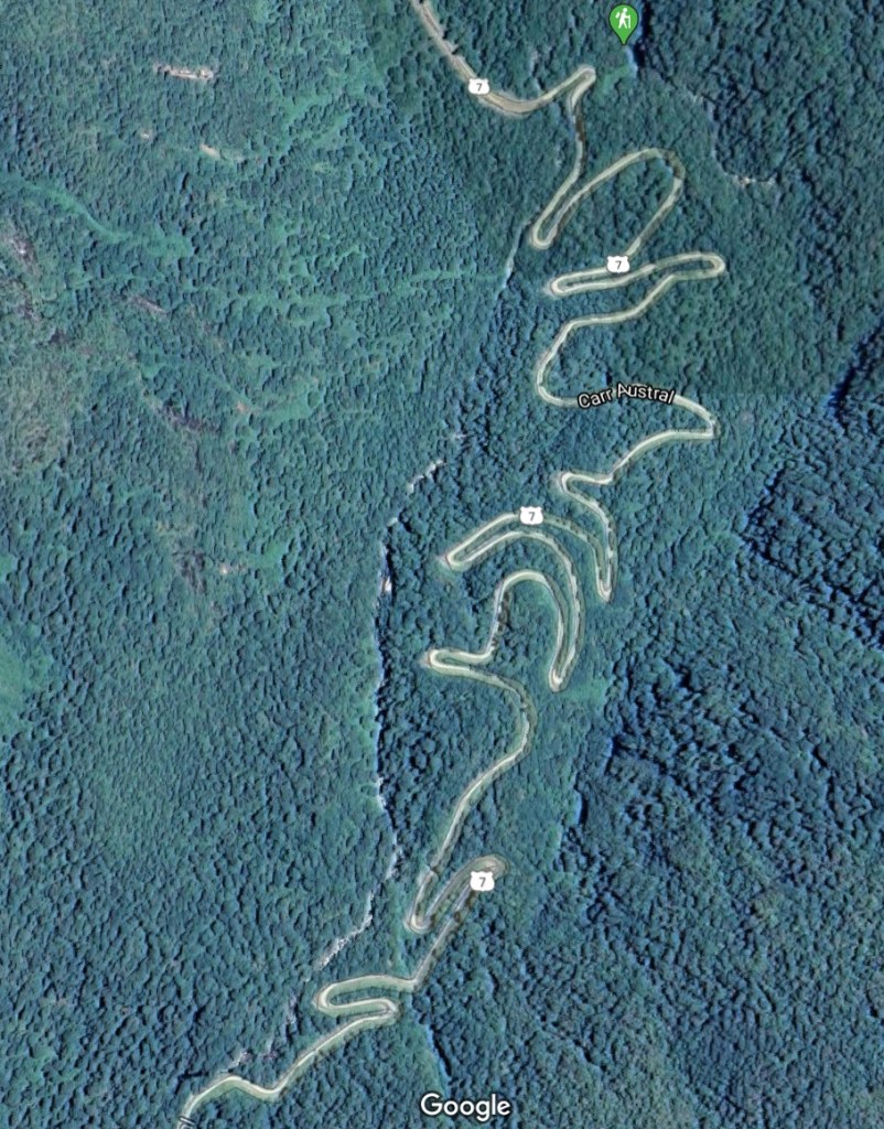 The drive was probably the best so far. It was raining lightly so not too bad an intrusion. I was taking Ruta 9 to 68 which would then merge into 40. Ruta 40, which is the famous route that goes pretty much the length of Argentina and is considered to be one of the great motorcycle rides in the world. Ruta 9 is a secondary road and not much traveled. At times it is just about one lane wide, more of a bike path. It twists and turns around the side of a mountain in a temperate rain forest. Below is a photo and a video of the ride. Interesting end of the video so stay with it.