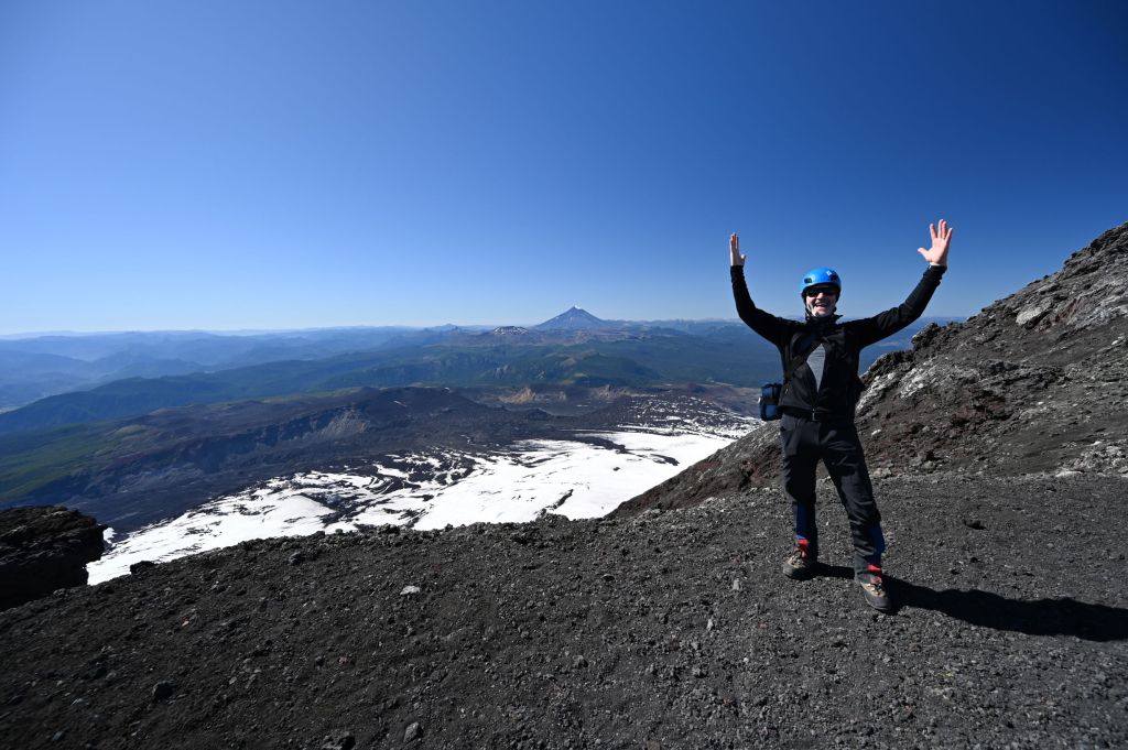 We got up early and hiked out the back of Peuma Lodge up to Obsession Lake. The hike was three miles long and 3,000-feet up. Obsession Lake is an infrequently visited site, which the guides claim has probably had less than 1,000 visitors in total, of which almost all have been brought to the lake by them. The Earth River team carted two inflatable kayaks and an inflatable paddle board up to the lake and stored them there. About 180 degrees of the lake was ringed by a glacial bowl consisting of rock and snow and the other 180 degrees was open to the Futaleufu Valley. The view of the Valley is one of the most impressive sights I have seen in my life…just spectacular and large and goes on forever!!!