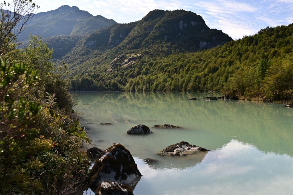 We stayed at Loncanao Cottages on Lago Loncanao, a spectacular lake ringed by mountains, a picture of which is below.