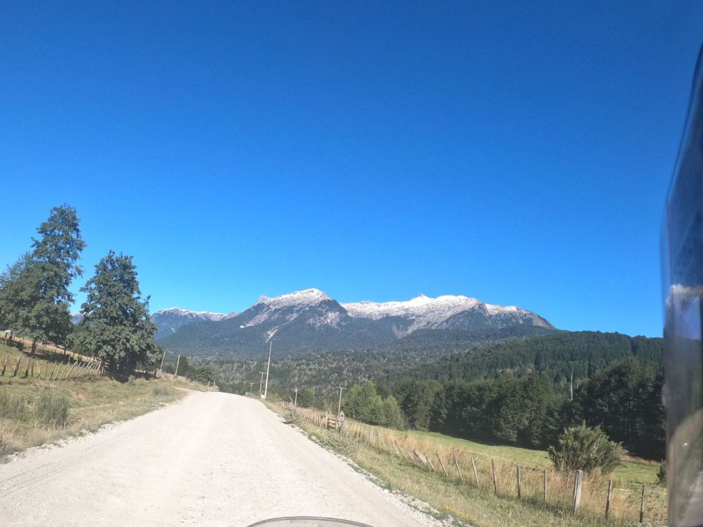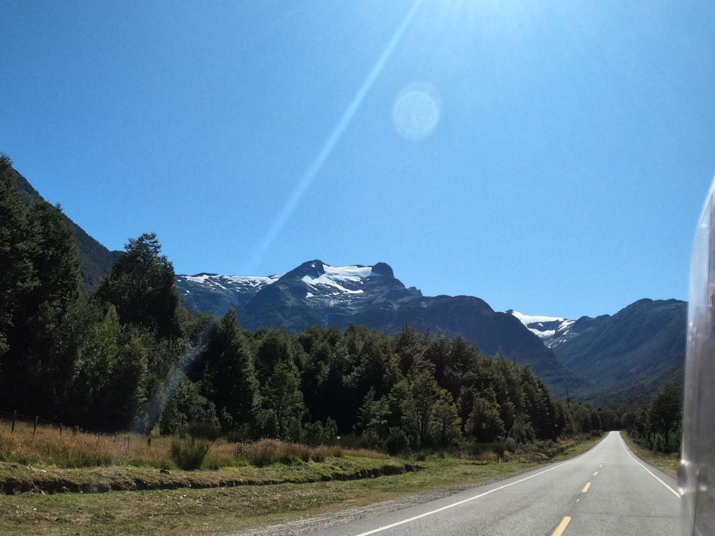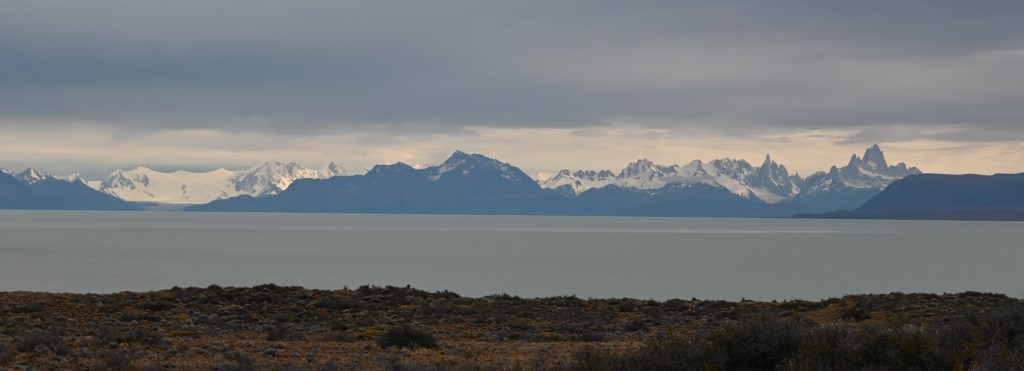 Our goal this day was El Calafayte, which is a tourist town about 60k away from the Perito Moreno Glacier. Further, we will be heading back west towards the Andes and the mountains begin to appear in the distance as we approach. Below is a pic of the Mount Fitzroy massif we could see in the distance.