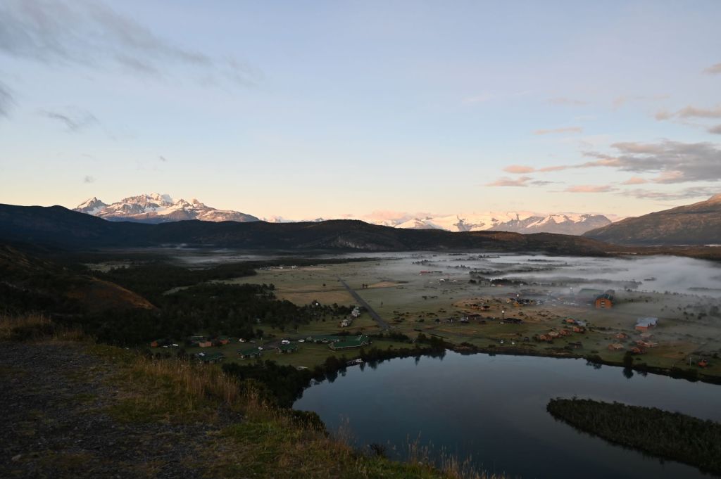 I was able to get up early, before sunrise, and ride to an overlook of the Serrano Valley and the Torres del Paine massif. I was extremely lucky that the sky had cleared and it was a crystal clear morning great for photographs.