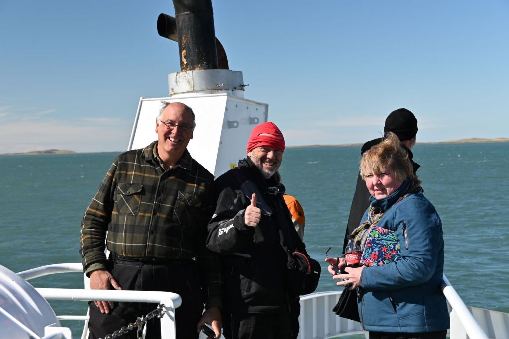 On Sunday, March 15, Kevin, Jane and I booked a boat ride out to the Harberton Penguin Reserve, which is east out of Ushuaia down the Beagle Channel towards the open Atlantic. The Beagle Channel is one of two interior passageways that allow ships to avoid the extreme weather and waves in the Drake Passage between Antarctica and Cape Horn on South America. Technically the water on the north side of the Channel is the Atlantic and the south the Pacific, and in the section we travelled, Argentina is on the north and Chile the south.