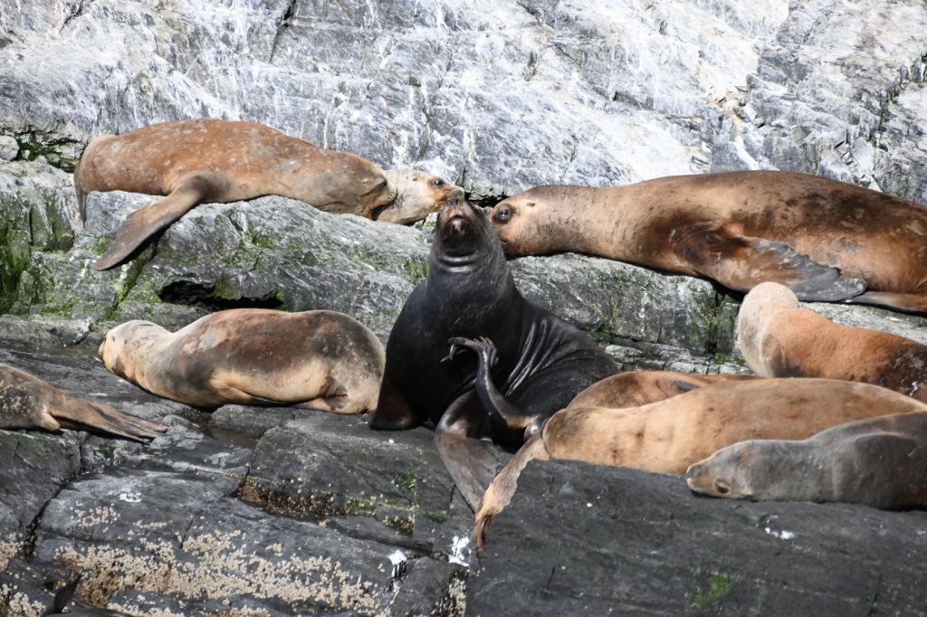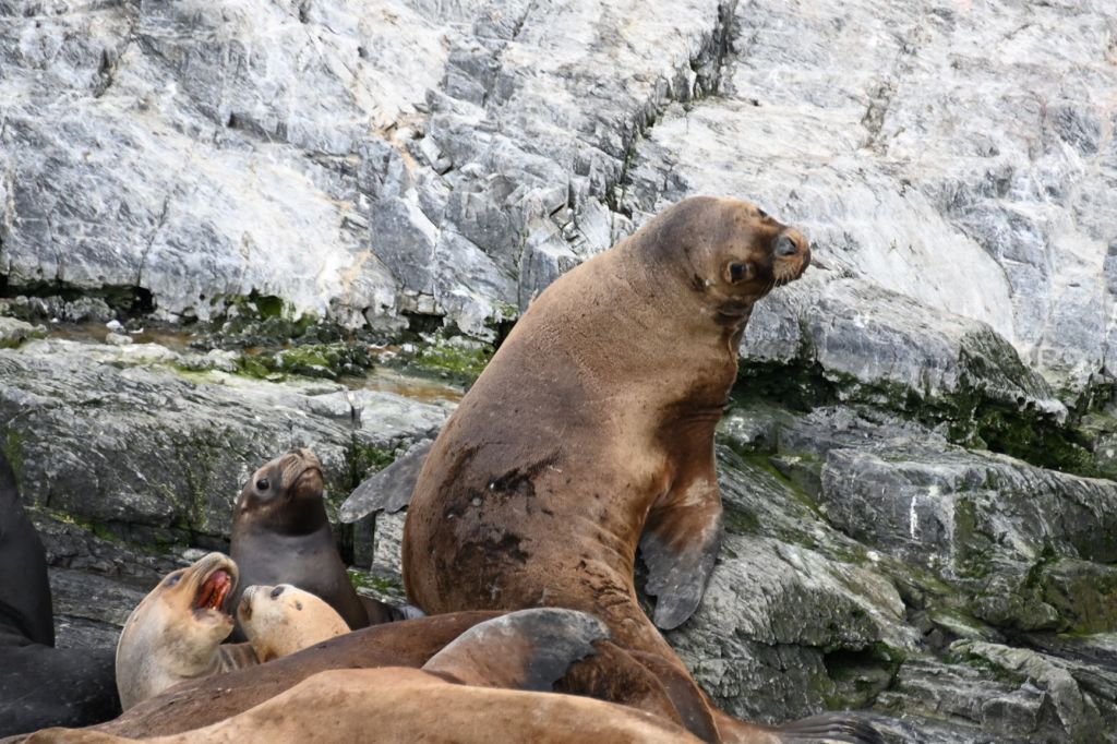 Below are a series of pics of the occupants of the island. My favorite was the male lion on the far left of the above photo. Below are a couple close ups and several additional photos. He held this pose for the 30 minutes or so we were in the boat viewing the island.