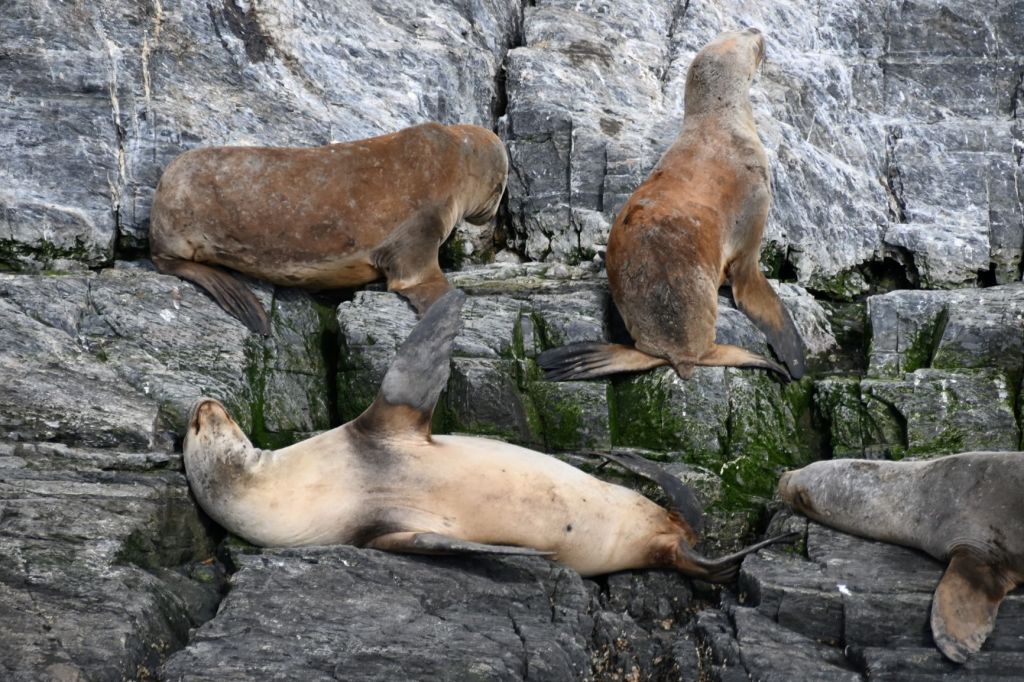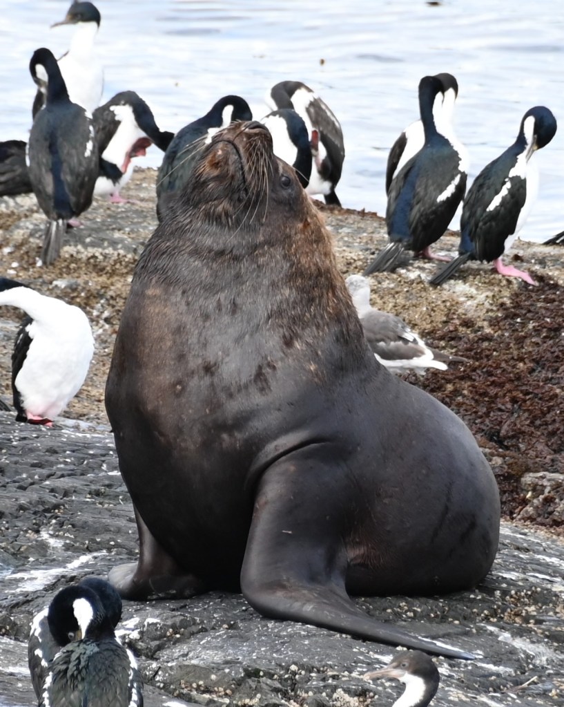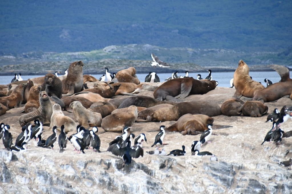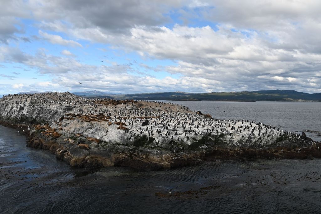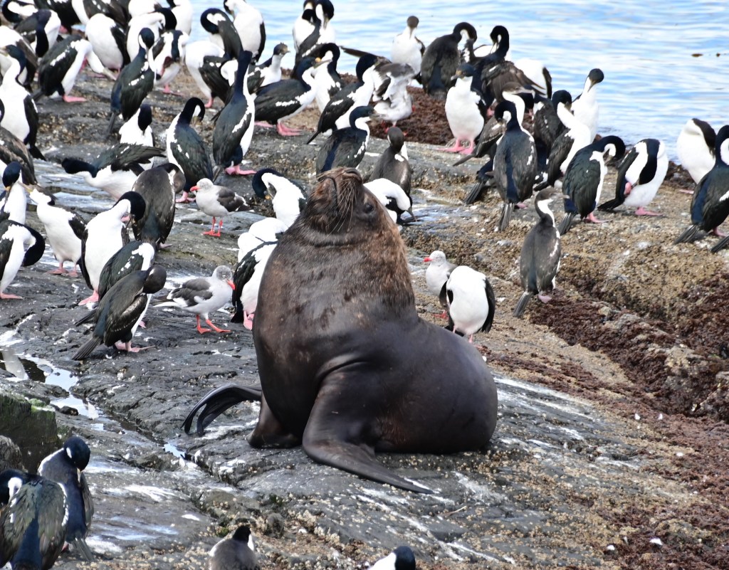 Our first stop was a rock in the middle of the channel populated by sea lions, cormorants and a few penguins.
