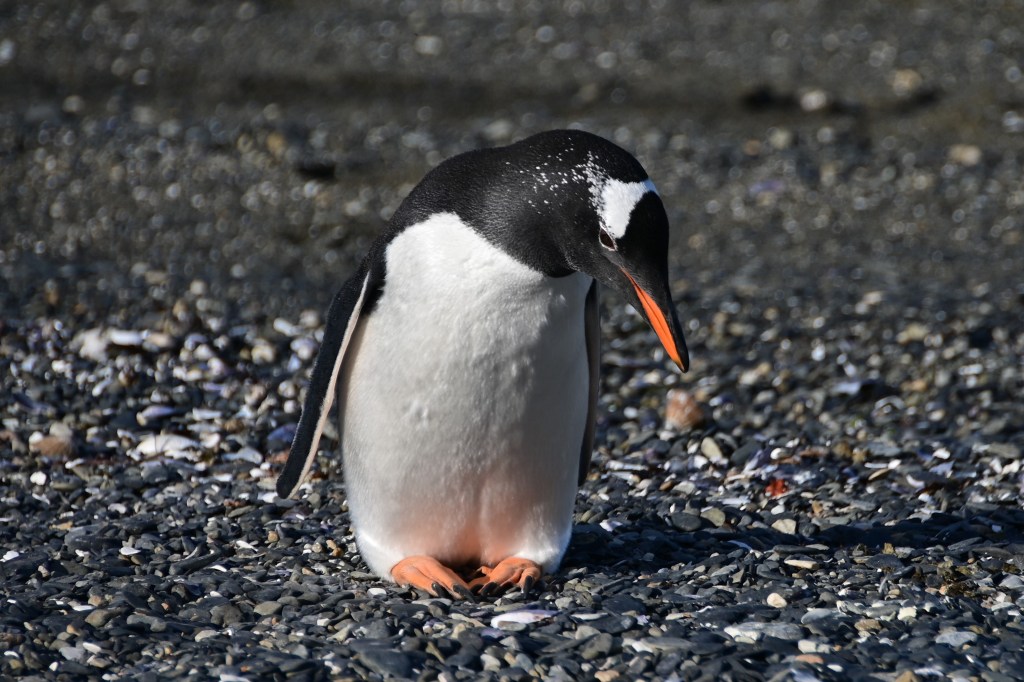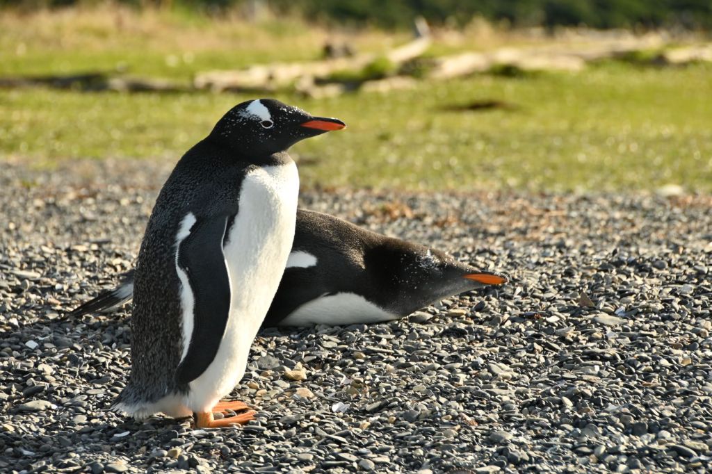 There are two types of penguins on the reserve: the larger gentoo penguins with the orange beaks and feet and the smaller Magellanic penguins. All in, there are 10,000-15,000 penguins on the island. They arrive on the island early in October to start their annual breeding season, raise their chicks and molt their feathers. Around late March, the penguins leave to begin their usual migration northward, and will feed at sea for more than 6 months, until the winter is over and spring calls them again to breed on land.