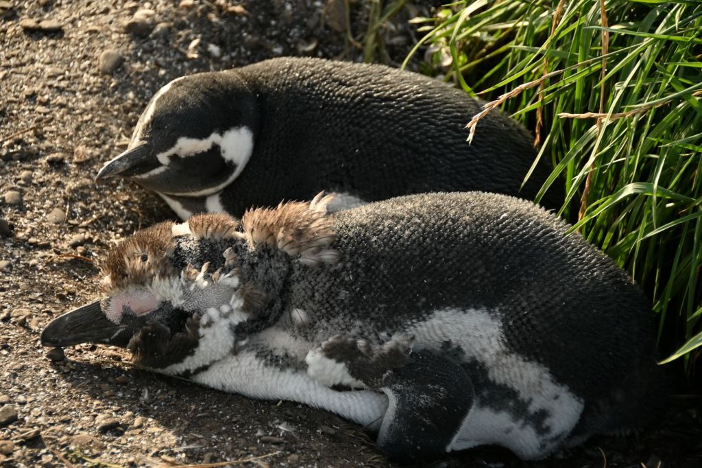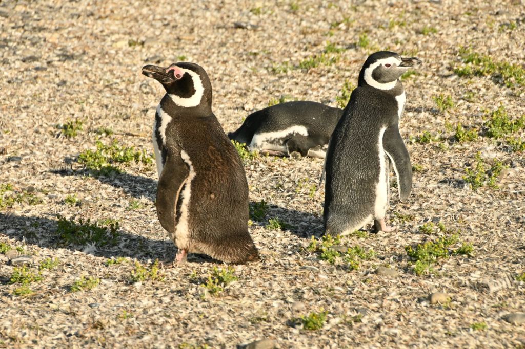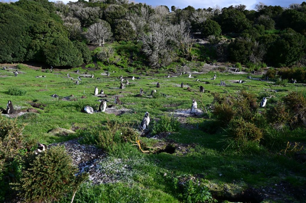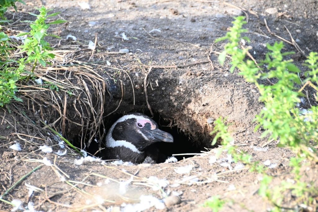 The Magellanic penguins dig holes in the earth and hatch their chicks there.