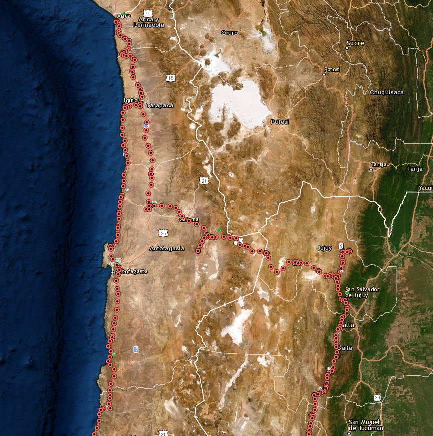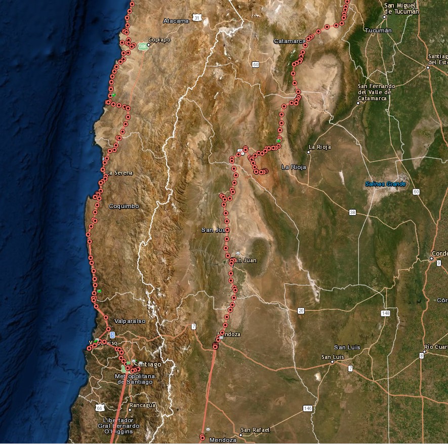 Traveled from Pichidangui to Huasco, which is a little over 500k and took me about seven hours. I’m attempting to stay on Highway 1 as much as possible but there are inevitable detours around areas not passable or where the route is broken up. I didn’t take any pictures since I was sufficiently challenged just staying on the bike and keeping my wits about me.