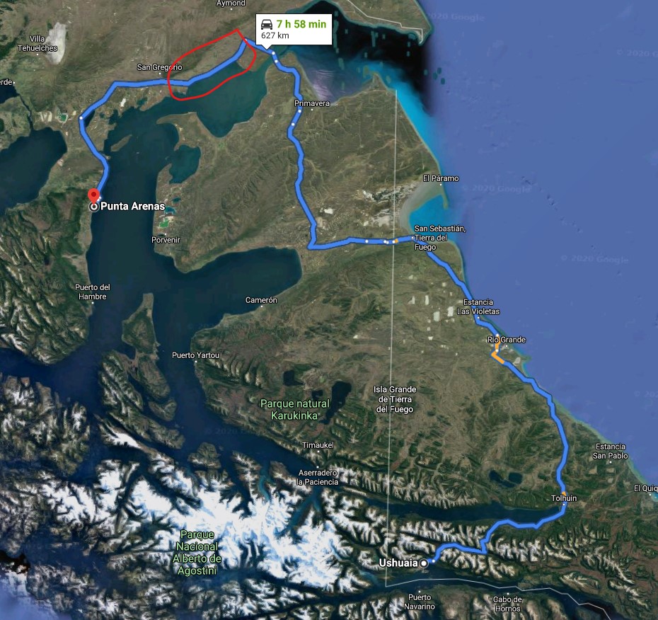 March 16 – Running for the Argentina Chile Boarder on Tierra del Fuego and Dropping the Motorcycle off in Punta Arenas
